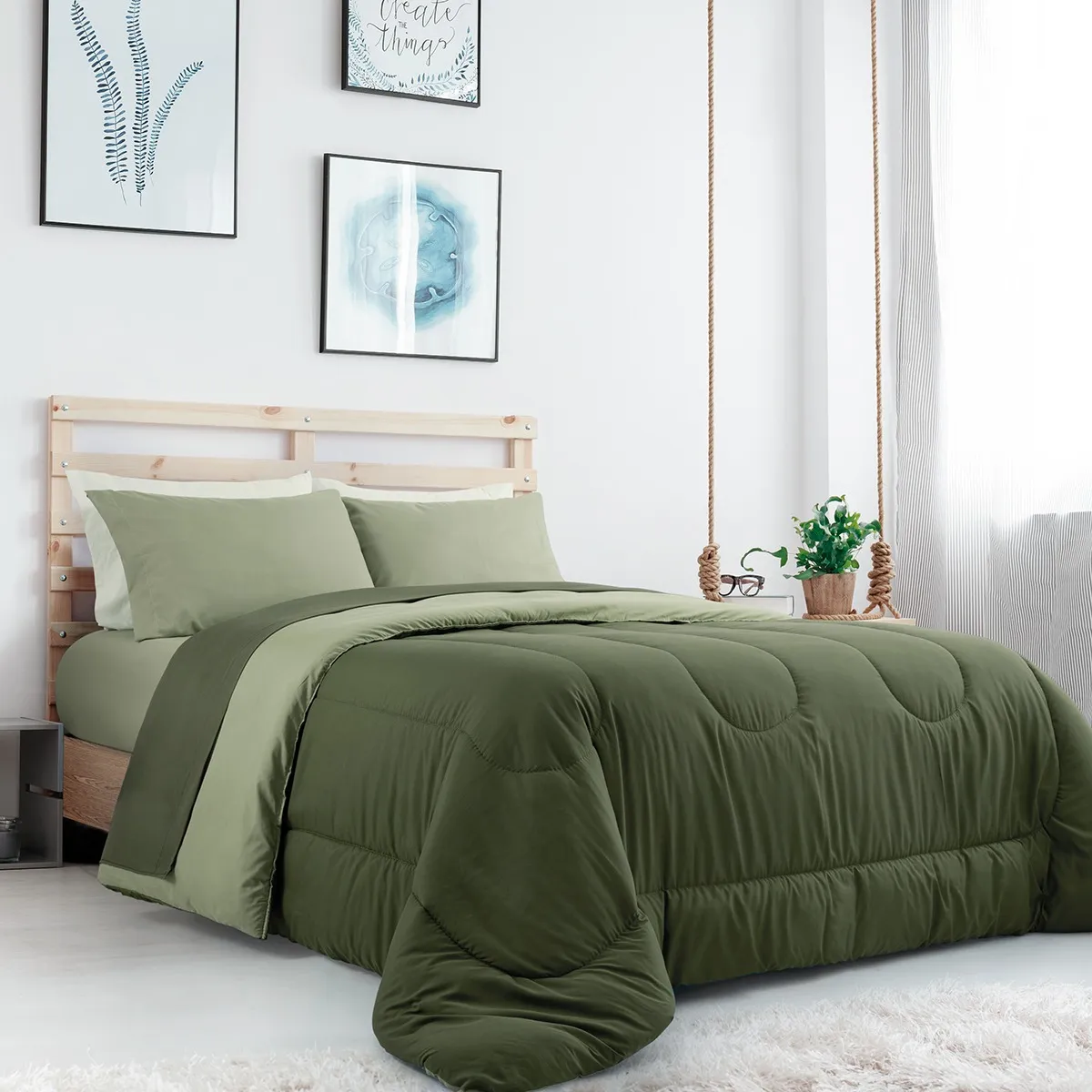 Acolchado Plus Basic Verde Militar 1 1/2 pl