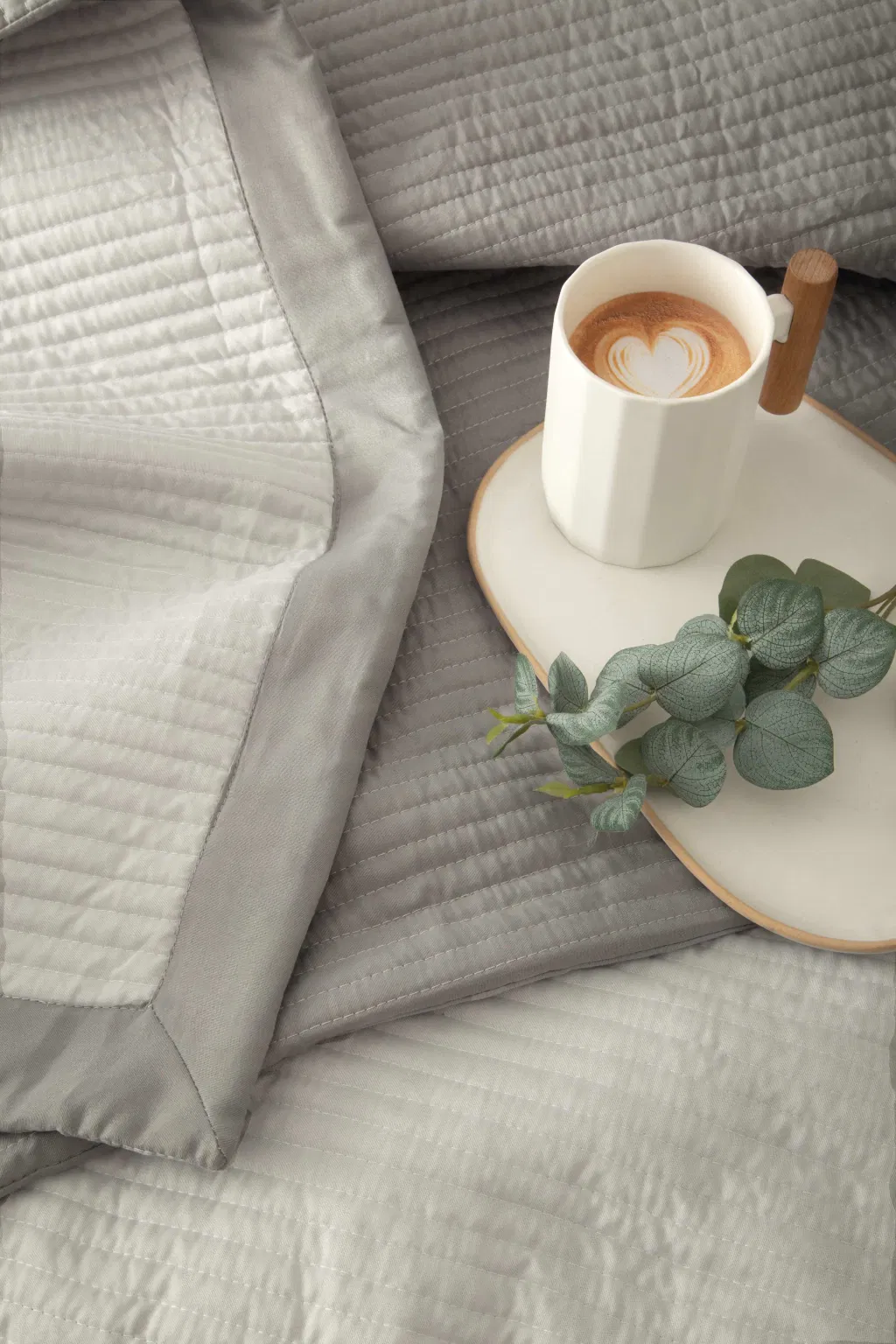 Disfrutá del confort y la elegancia en tu dormitorio con el cover quilt bicolor de Jean Cartier. Su sutil matelaseado rayado y el marco a tono aportan un diseño sofisticado, moderno y fácil de combinar.