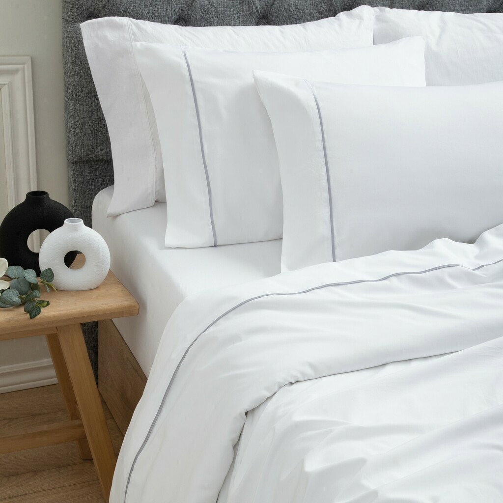 Descubrí el juego de sábanas Oxford Lumiere 600 HQ de Jean Cartier, con vivo de satén en el emboso y fundas. Suavidad y calidad superior. HIGH QUALITY para un descanso excepcional.
