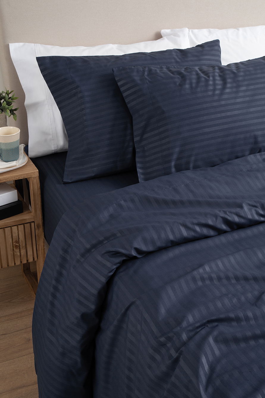 Línea Oxford Luxe 600 HQ. Juego de sábanas con diseño a rayas símil DOBBY emboss. HIGH QUALITY.