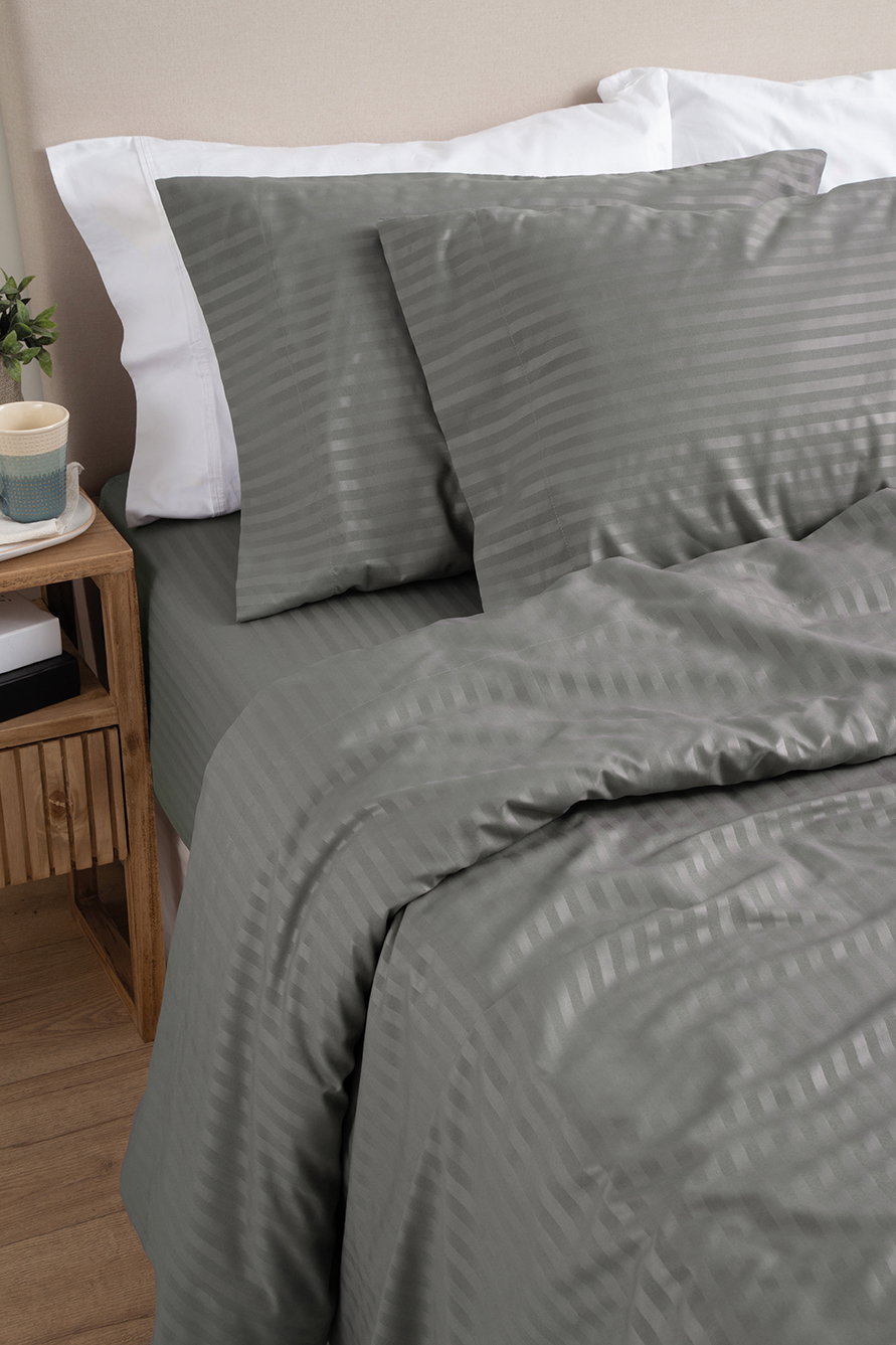 Línea Oxford Luxe 600 HQ. Juego de sábanas con diseño a rayas símil DOBBY emboss. HIGH QUALITY.