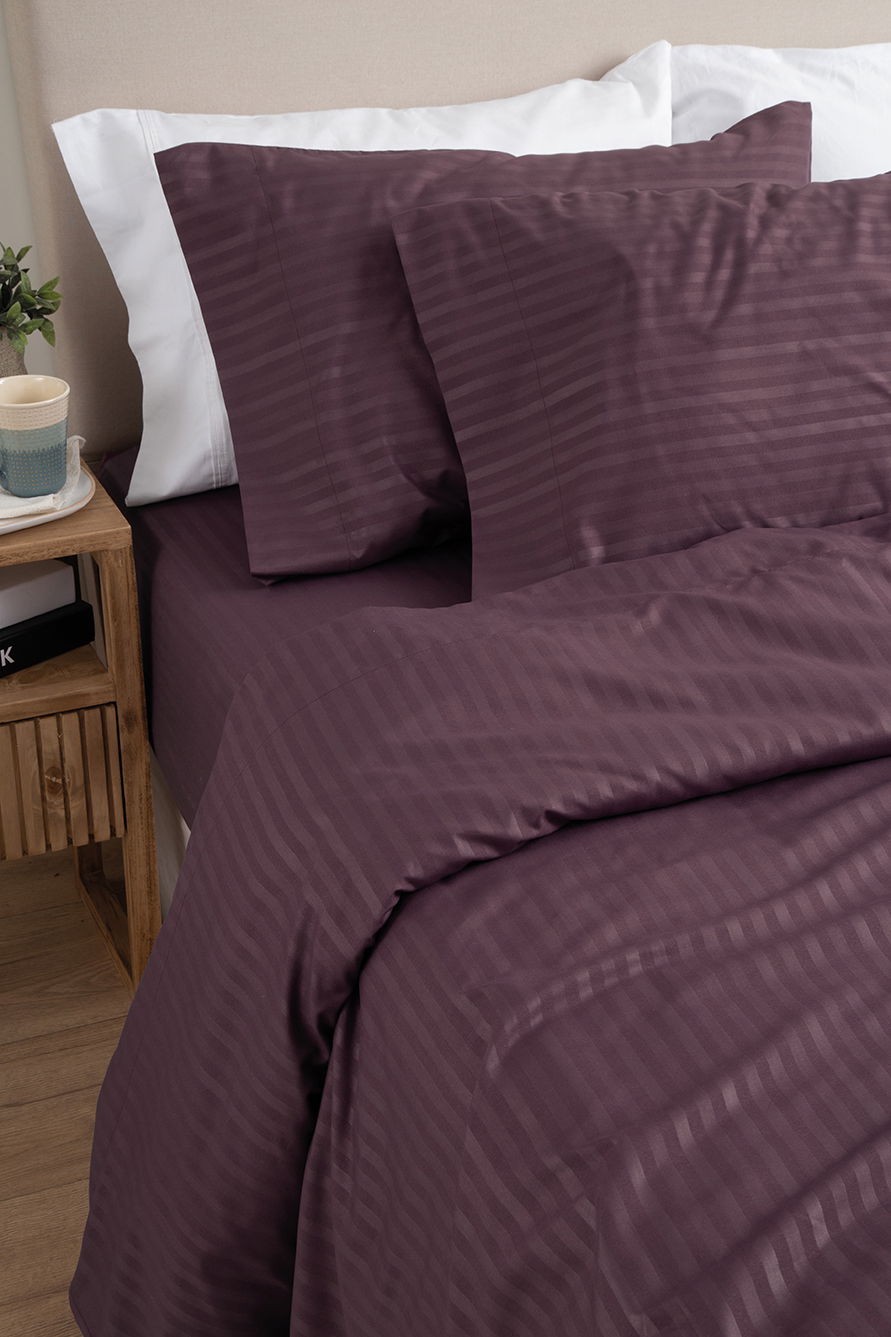 Línea Oxford Luxe 600 HQ. Juego de sábanas con diseño a rayas símil DOBBY emboss. HIGH QUALITY.