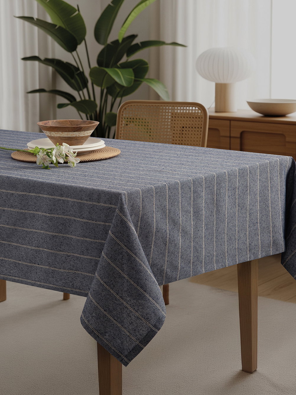 Mantel con tejido hilado color con diseño a rayas