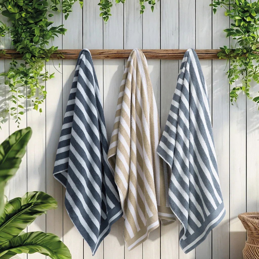 Disfrutá de la suavidad y la calidad premium del toallón Bahía de Jean Cartier. Con diseño a rayas y tamaño extra grande de 80x150 cm, es perfecto para envolverte con confort después del baño o para llevar a la pileta y la playa.