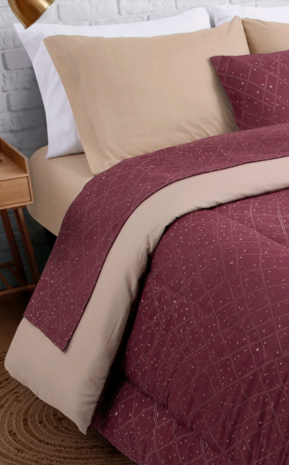 Realizado en: 48% Algodón y 52% Poliéster. Antipeeling 132 hilos.